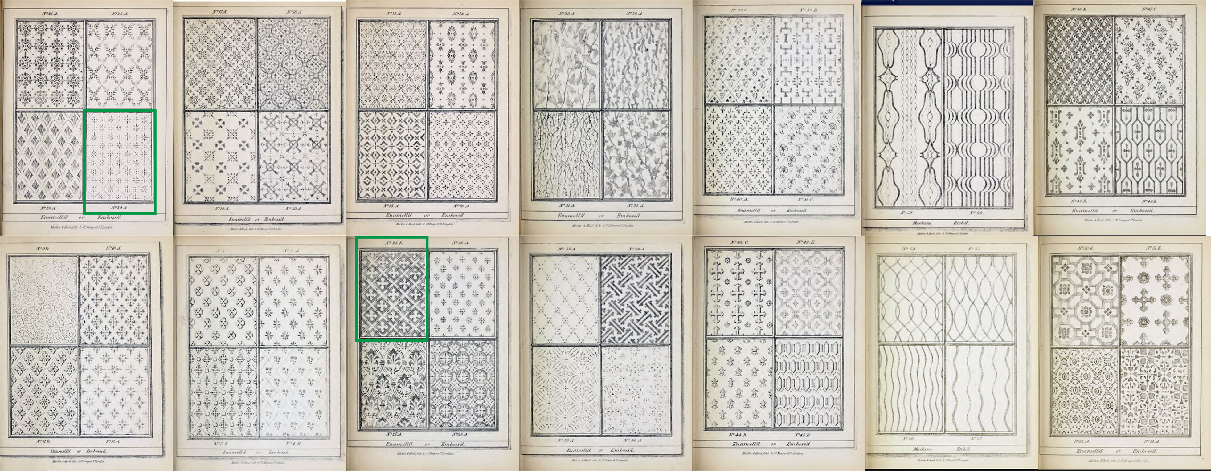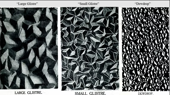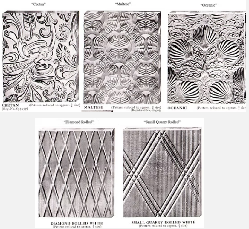 To the left, you’ll see a selection of traditional acid-etched glass patterns taken from older catalogues.