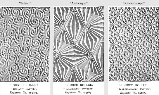 Chance Brothers & Co. (1898–1905) The magazine Academy Architecture published a series of illustrated advertisements by Chance Brothers & Co. between 1898 and 1905. In these ads, Chance described several product lines — Rolled Plate, Figured, Rolled Cathedral, and Double Rolled Cathedral — presumably listed in ascending order of quality. All of the images featured in the ads represent the Figured Rolled range.
